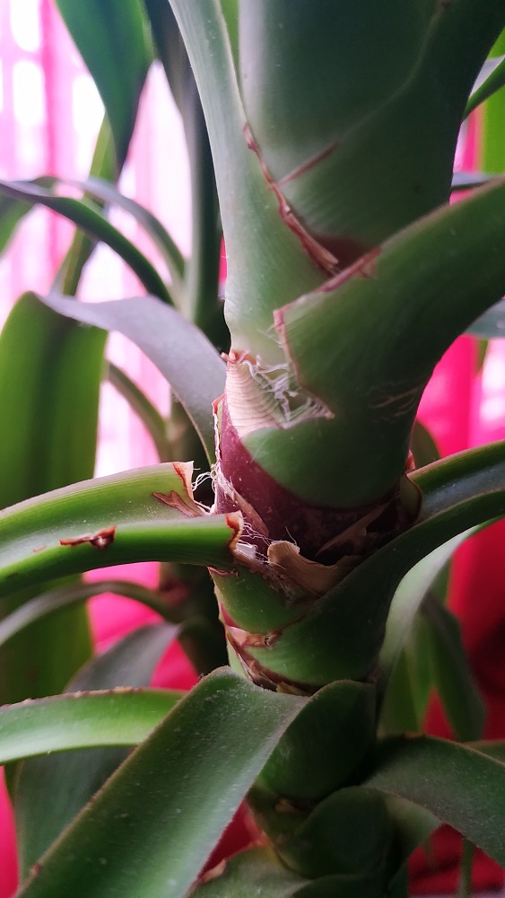 Un Yucca : a des tâches sur ces feuilles comme des brulures mais ce n'en sont pas, sur d'autres feuilles on dirait des sortes de perforations. Au niveau de la base de la feuille on remarque que c'est cassant, comme si elle ne supportais pas son poids. On voit aussi une sorte de plaque noire sur l'un des troncs principaux (celui de droite) au niveau de la base des deux rameaux suivants (photo n°3/ on ne voit pas en détail la "croute" noire, c'est seulement pour la situer sur la plante). Cela fais environs deux ans qu'il à ça (et il en à 10). Auriez vous une idée de ce que ça pourrai être ?