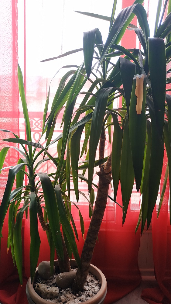 Cela fais environs 6 mois que ma mère à remarqué la présence de ces tâches.. La plante est là depuis 5 ans environs.