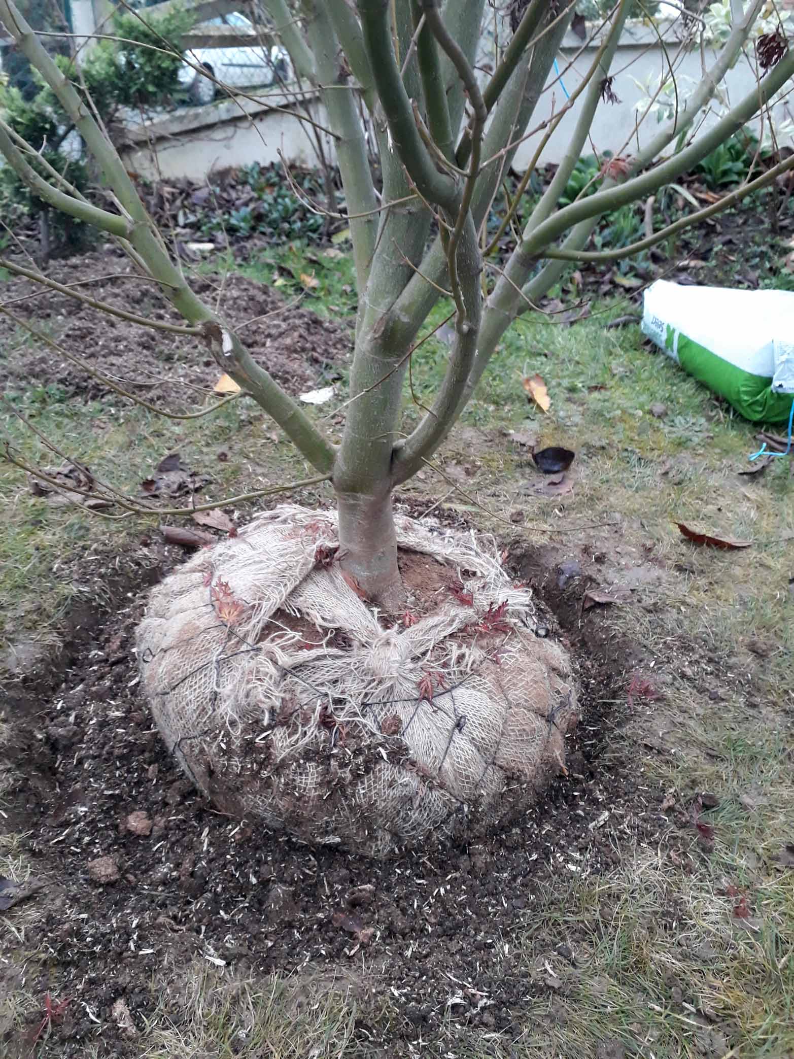 Une autre question pour le cornus, il n'avait plus de feuilles et c'était très compliqué pour choisir la bonne face avant. Si je me suis trompé, est ce qu'il serait envisageable au printemps de le déterrer légèrement pour lui faire une rotation ou ça fera trop pour lui ?