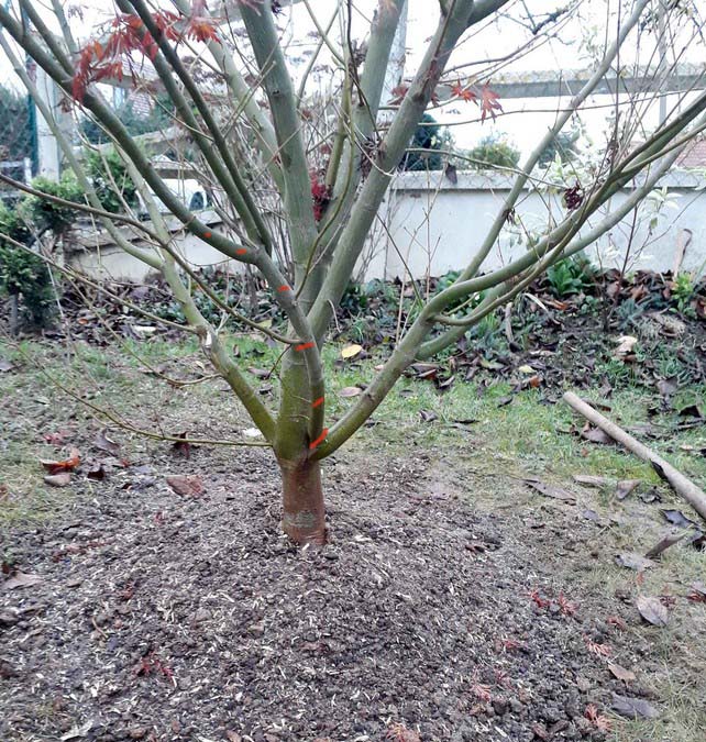 Mais les racines des érables du Japon ont un ennemi principal, c’est l’excès d’eau en toute saison et en particulier l’hiver.