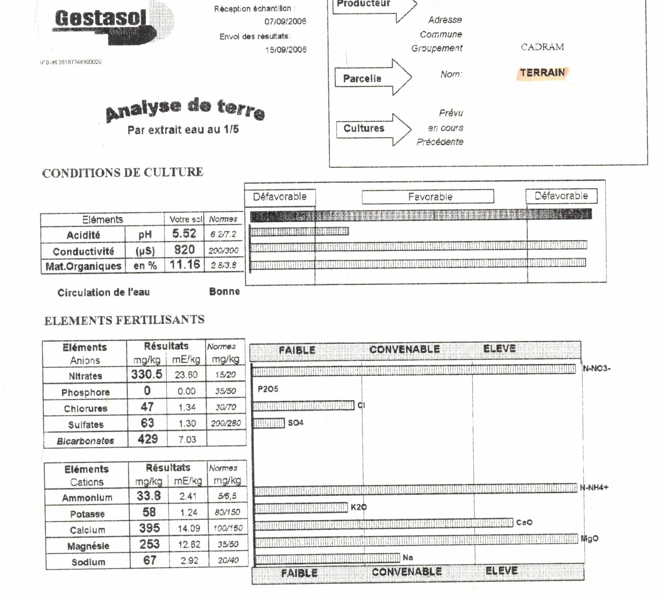 en dessous de 15°, ça ne pousse pas, ils nourrissent les bestiaux au rations ! merci Bruxelles, Bruxelles qui a incité les gens à faire du bovin alors que seuls les ovins sont adaptés, bref on arrête là. Pour info voici les analyses de mes terrains , une des deux est le terrain l'autre c'est sous un couvert de feuillus. Bien du plaisir pour faire du légume la dedans.