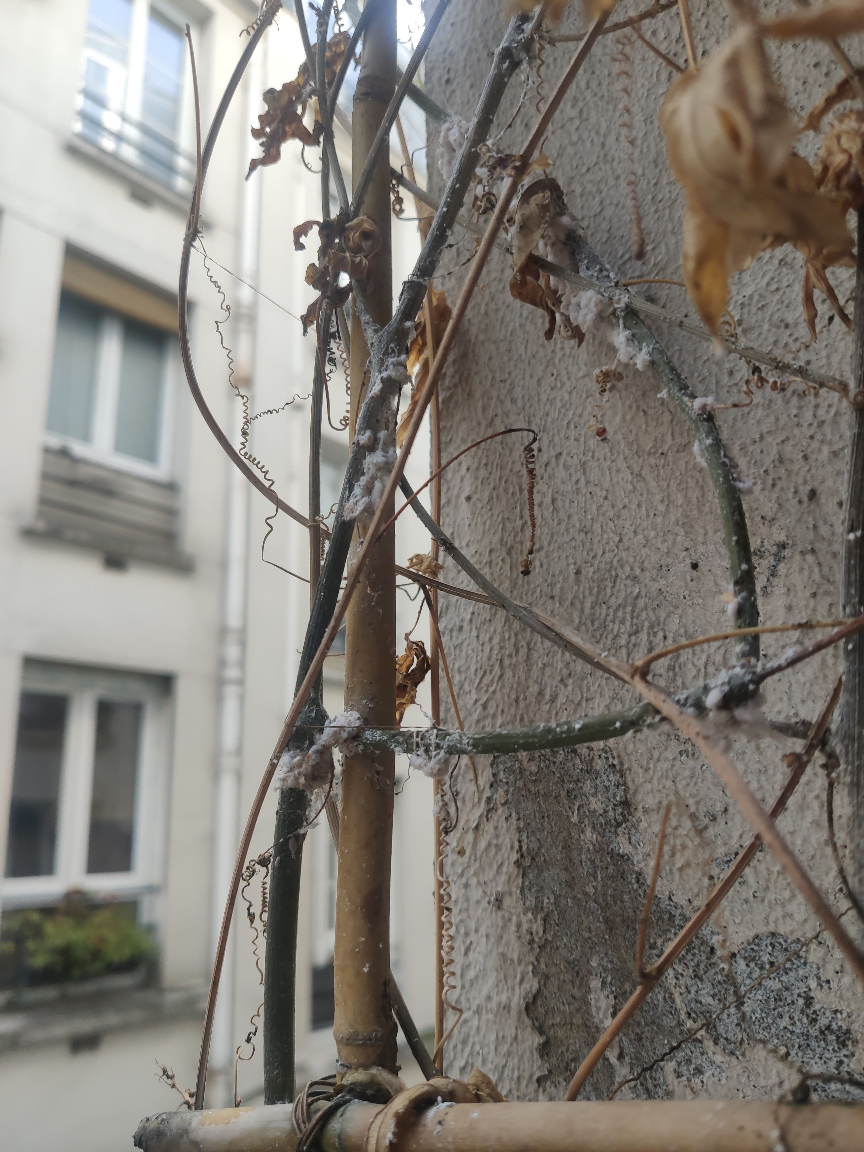 Je ne m'y connais pas donc je suis preneur de tout conseil pour identifier ce problème et le traiter. J'ai envisagé de tailler complètement les passiflores en laissant une 10aine de centimètre de tronc en espérant qu'elles repartent sainement au printemps. Mais je ne suis pas certain que cela suffise et je me demande s'il ne faudrait pas aussi un traitement. Je suis bien conscient que ce ne sont pas des conditions idéales pour ces plantes, mais je ne pense pas que le problème vienne de là.