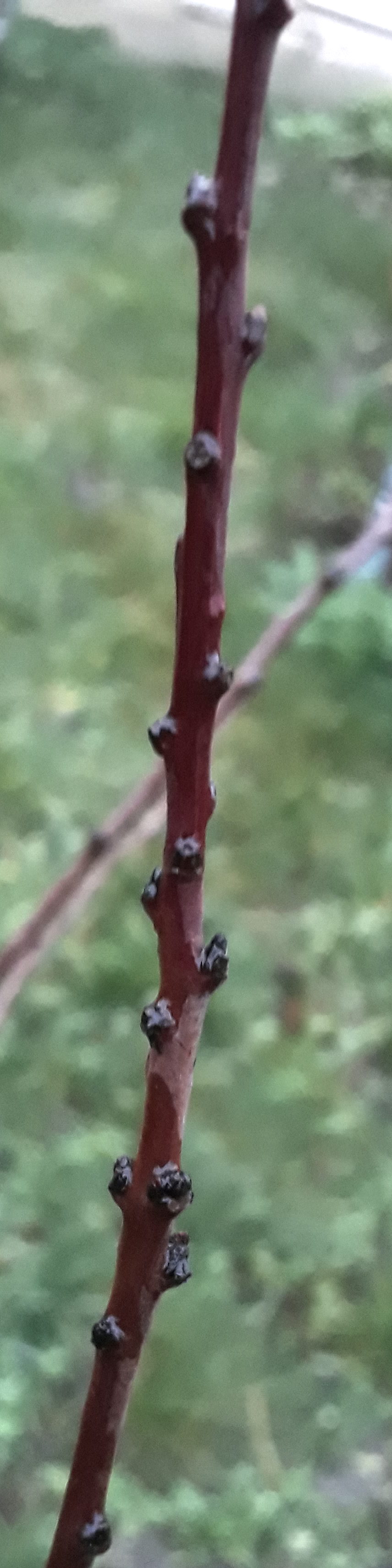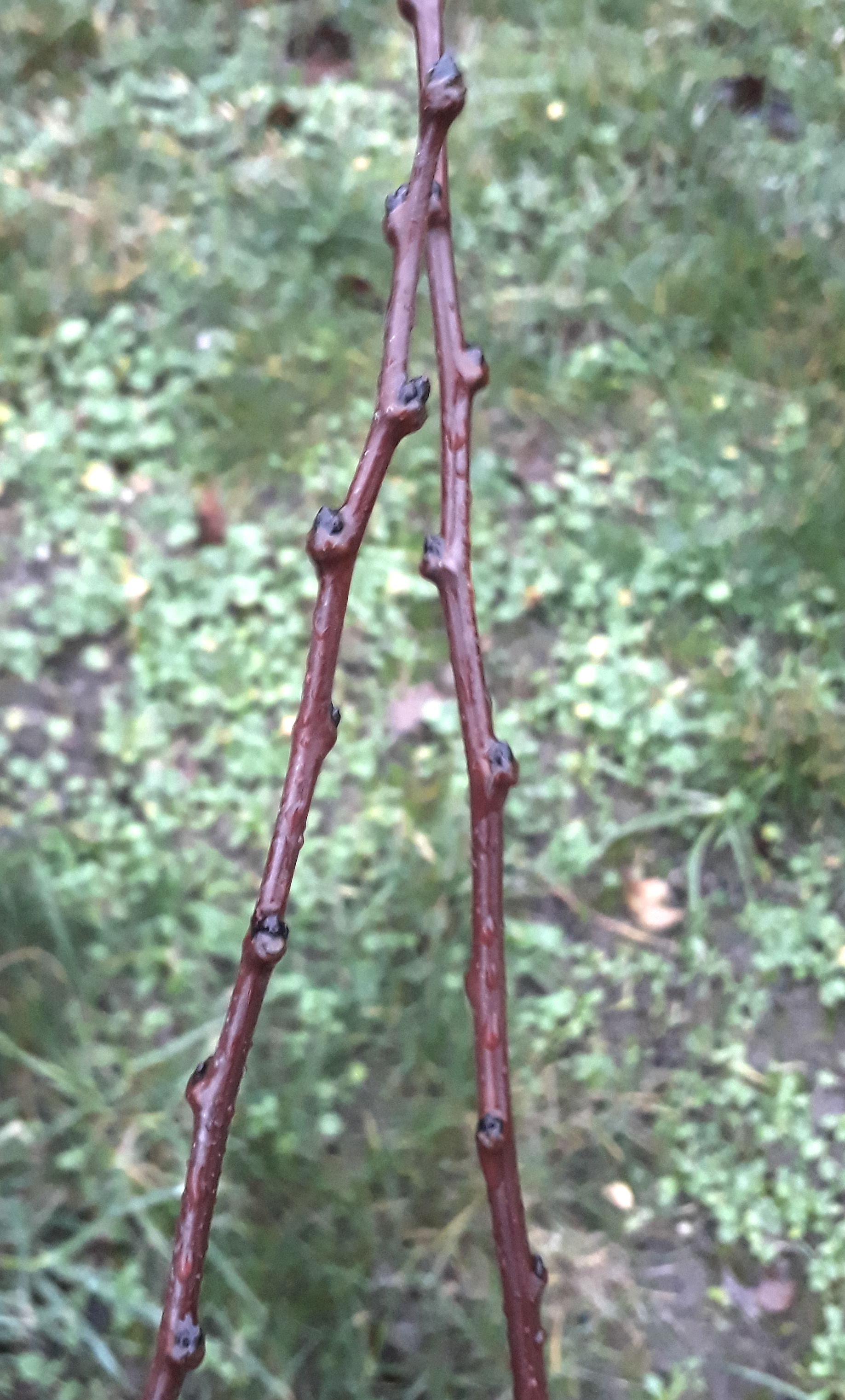 Il me semble que les pousses ont d'habitude des bourgeons alternés et assez espacés comme ci dessous.
