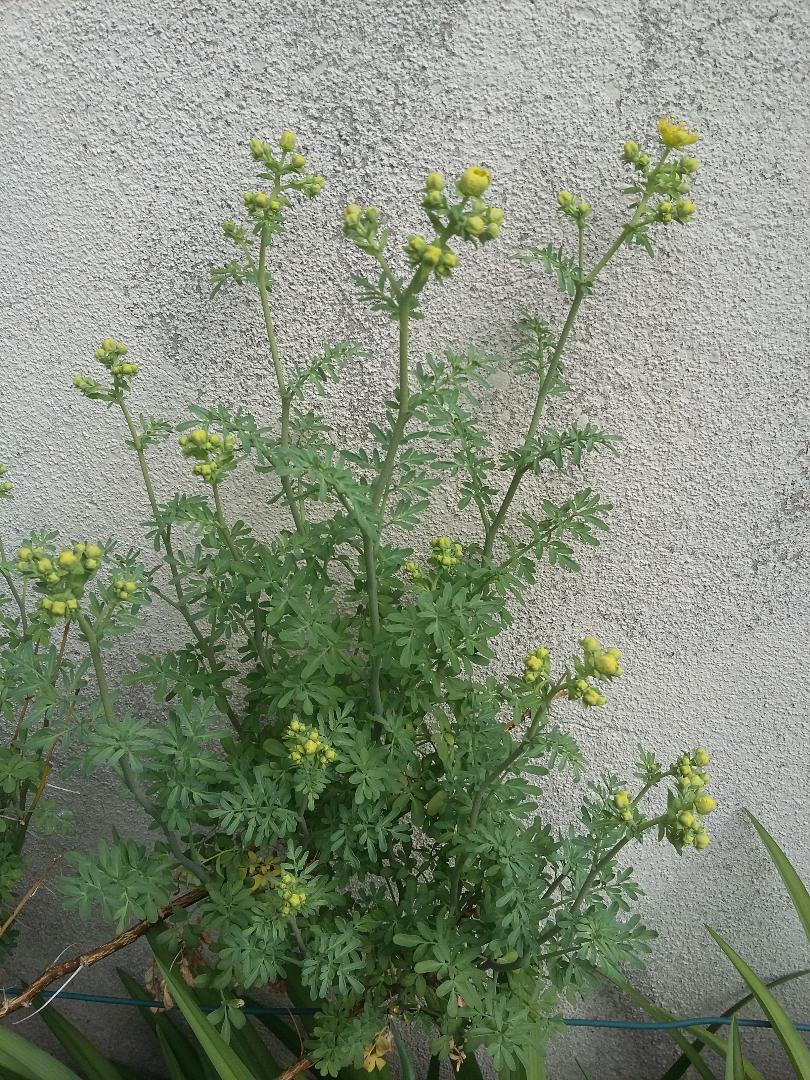 Je verrais bien Ruta graveolens, la rue officinale ou rue des jardins, famille des rutacées, avec son arôme fétide.