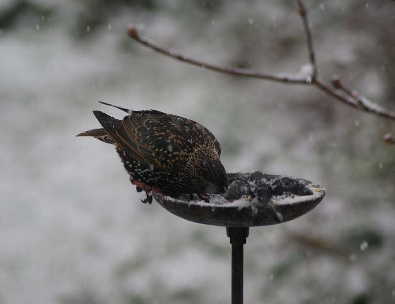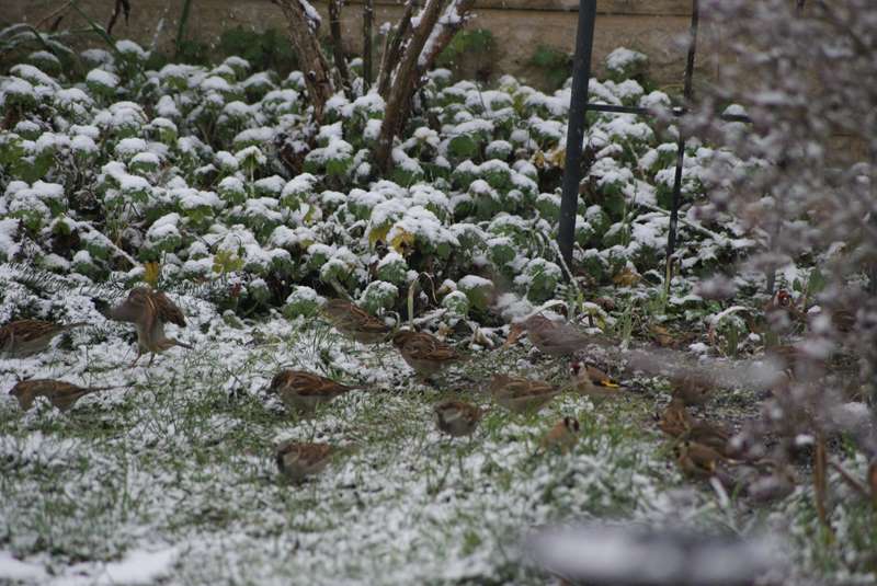 Un ciel de plomb, de la neige et beaucoup de monde aux mangeoires et sous les mangeoires....