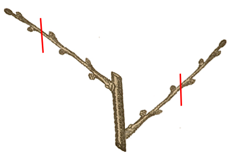 Pour la taille des coursonnes à trois ou quatre nœuds ? Il faut compter les bourgeons et couper après le supérieur. Si le un est en position inférieure, le quatre va être en position supérieur et vice versa.