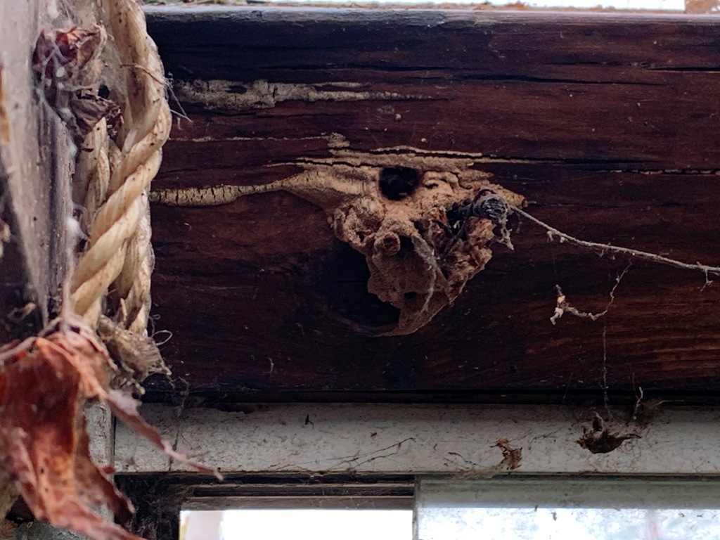 Le bois de ma serre est très abîmé, elles n'ont donc pas eu de mal à faire leur galerie. Cependant, j'aimerais assez qu'elles ne continuent pas leur oeuvre de destruction!