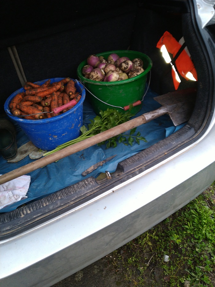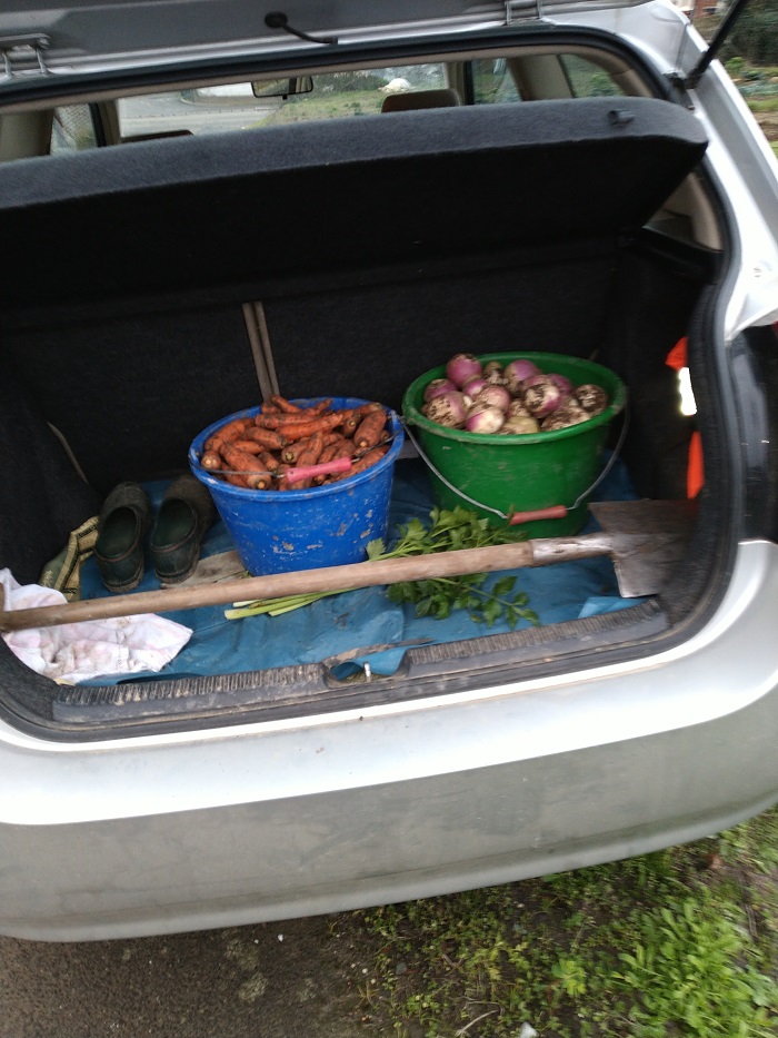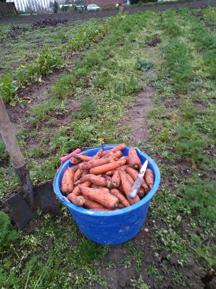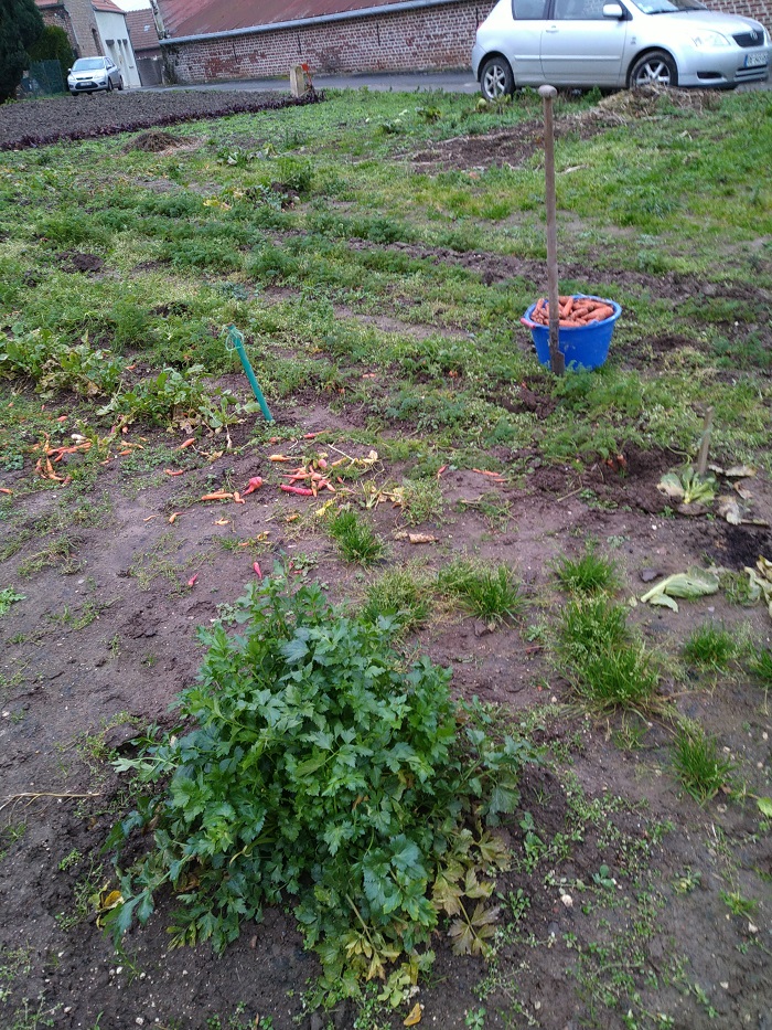Récolte de navet et carotte pour la dernière fois dans le grand potager . Carotte non déduite cause de confinement, potager à 9 km de mon domicile .quelque belle carotte tardive quand même