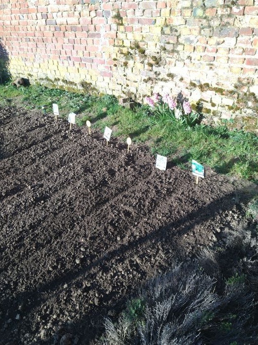 Au potager bis avec un petit vent froid j'ai semé persil-céleri-petit pois et planté échalotte