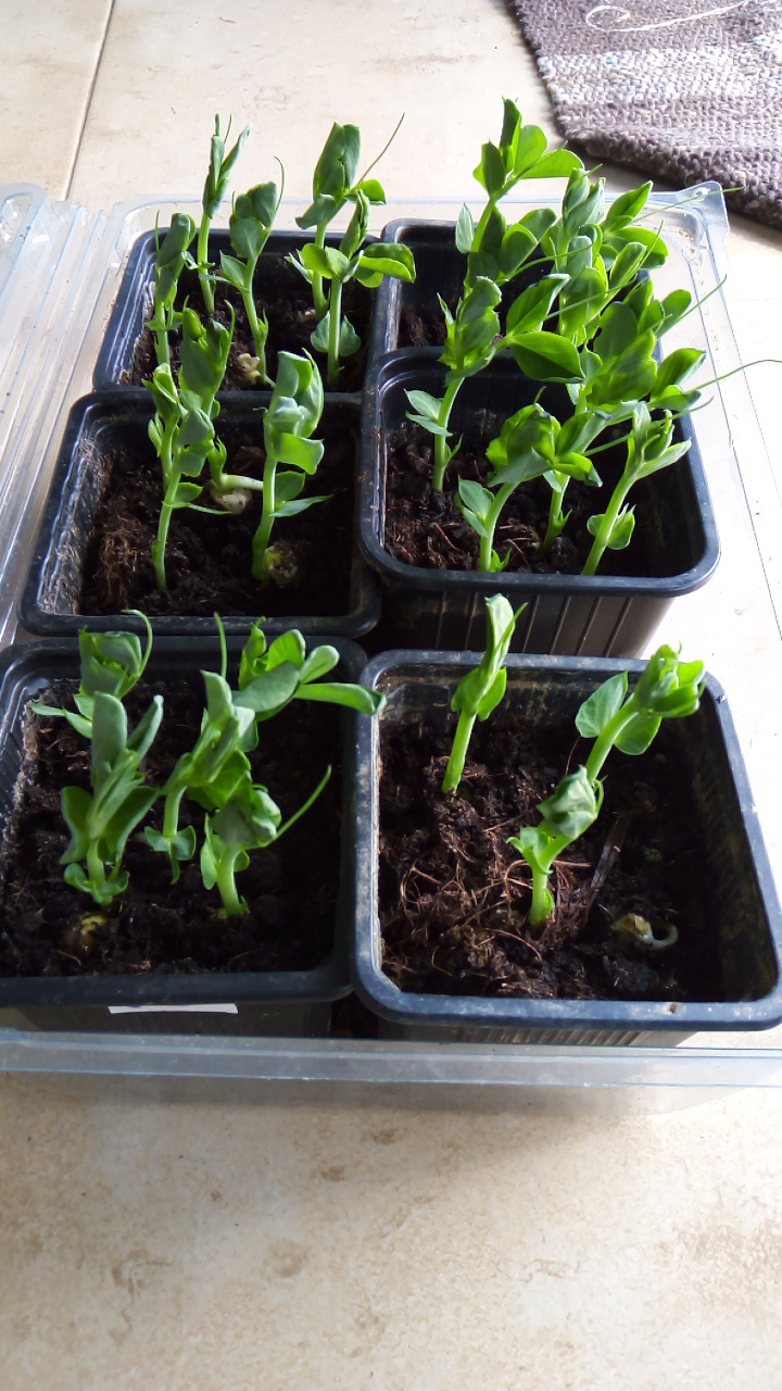 A part ça, j'ai rajouté des petits pois que j'avais fait pousser en godet, c'était bien temps, les racines commençaient à sortir dessous Je comparerai avec ceux qui ont été semés le même jour sur place!