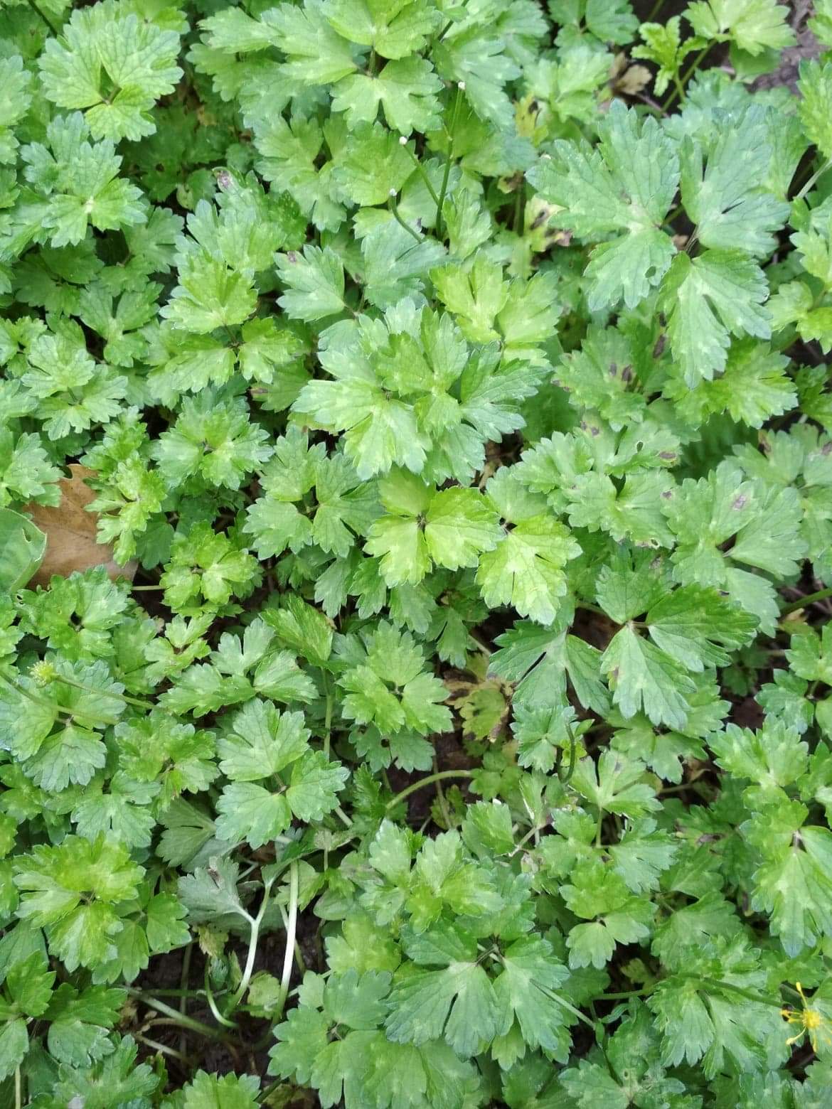 je dirai que cette cochonnerie occupe entre 30 et 40 mètres carrés. quand j'ai planté la camomille il y a environ 4 ans, cette Renoncule n'était pas du tout là. je n'ai pas été vigilante. je ne pensais pas que ça allait s'etaler à ce point et maintenant c'est l'enfer. je ne vois aucune solution à part mettre du désherbant et tout recommencer.