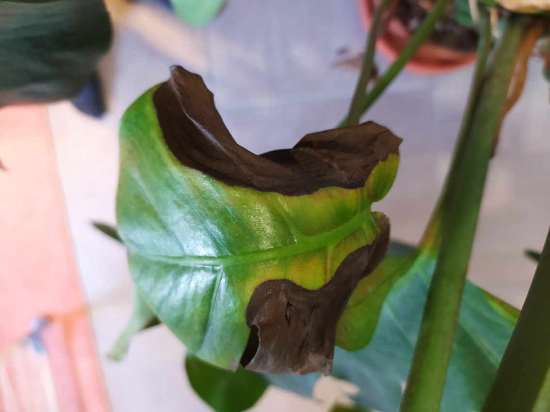 seules les feuilles d'avant l'achat ne sont pas touchées. Je ne l'arrose pas trop en hiver. Je vaporise de l'eau une ou 2 fois par semaine.