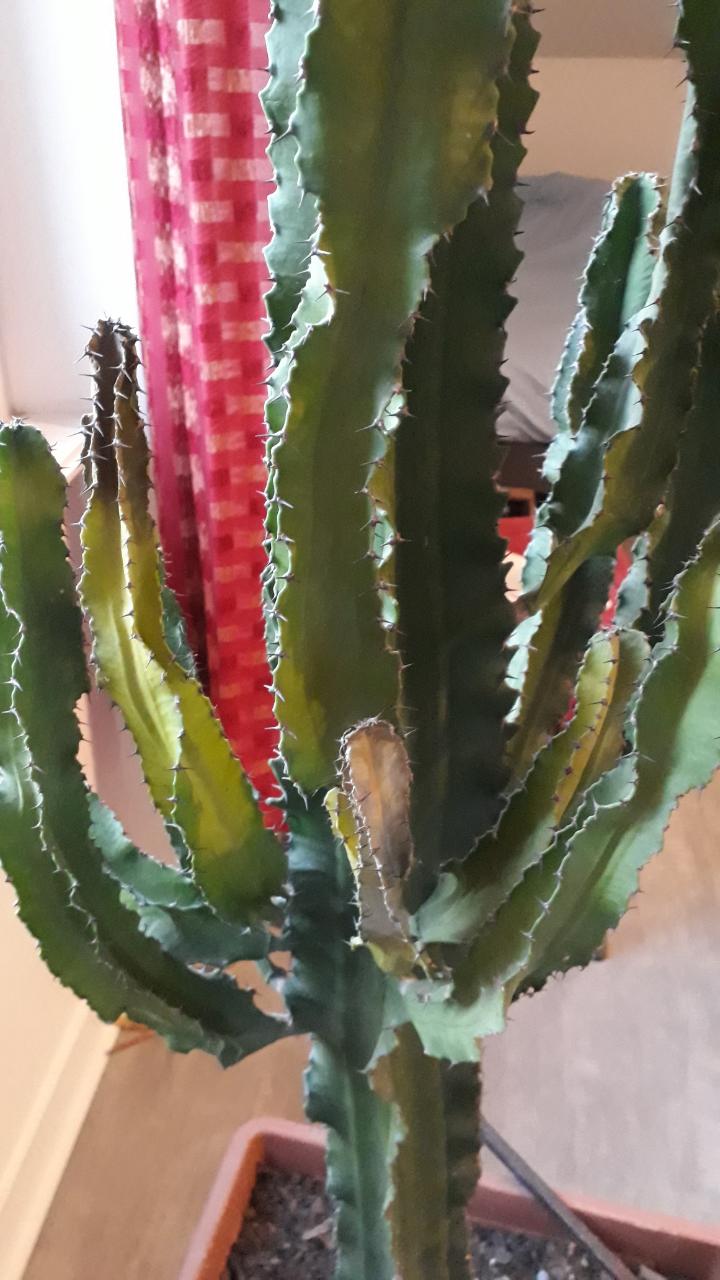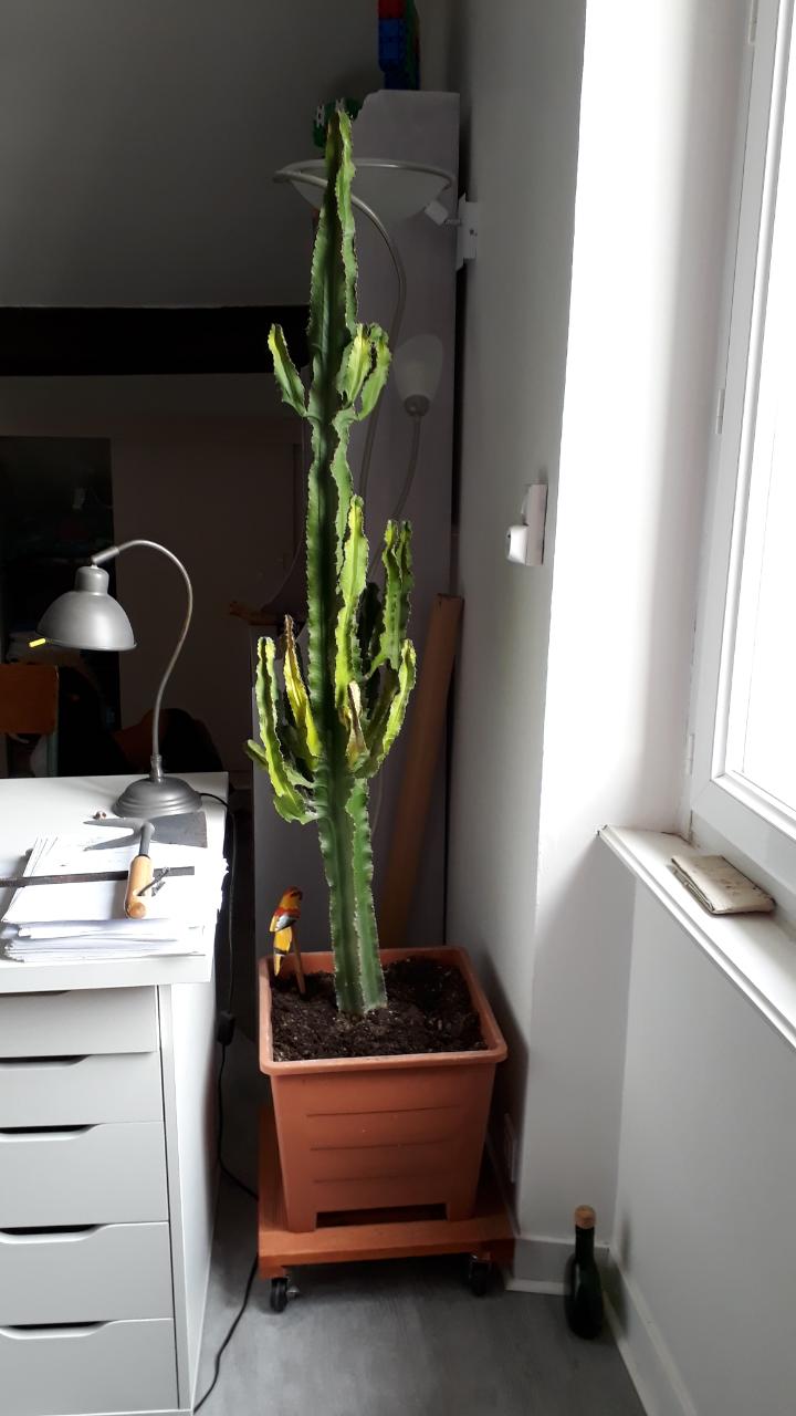 J'ai rempoté mon euphore d'1m70 il y a deux semaines mais le substrat (tereau catus) que j'ai utilisé était humide ! Je pense qu'elle a eu trop d'eau et qu'elle se sent mal. Comment la sauver ?? Dois-je couper les parties marons ?? Faut il enlever le substrat ??
