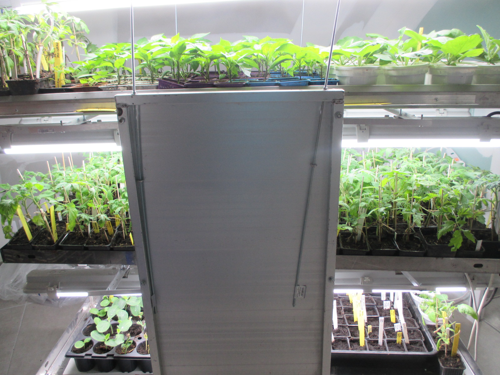 Elle est dans une chambre non chauffée, j’ai des plateaux chauffants, mais soit je chauffe les semis et ensuite je coupe la chauffe et je mets les lumières, jamais ensemble
