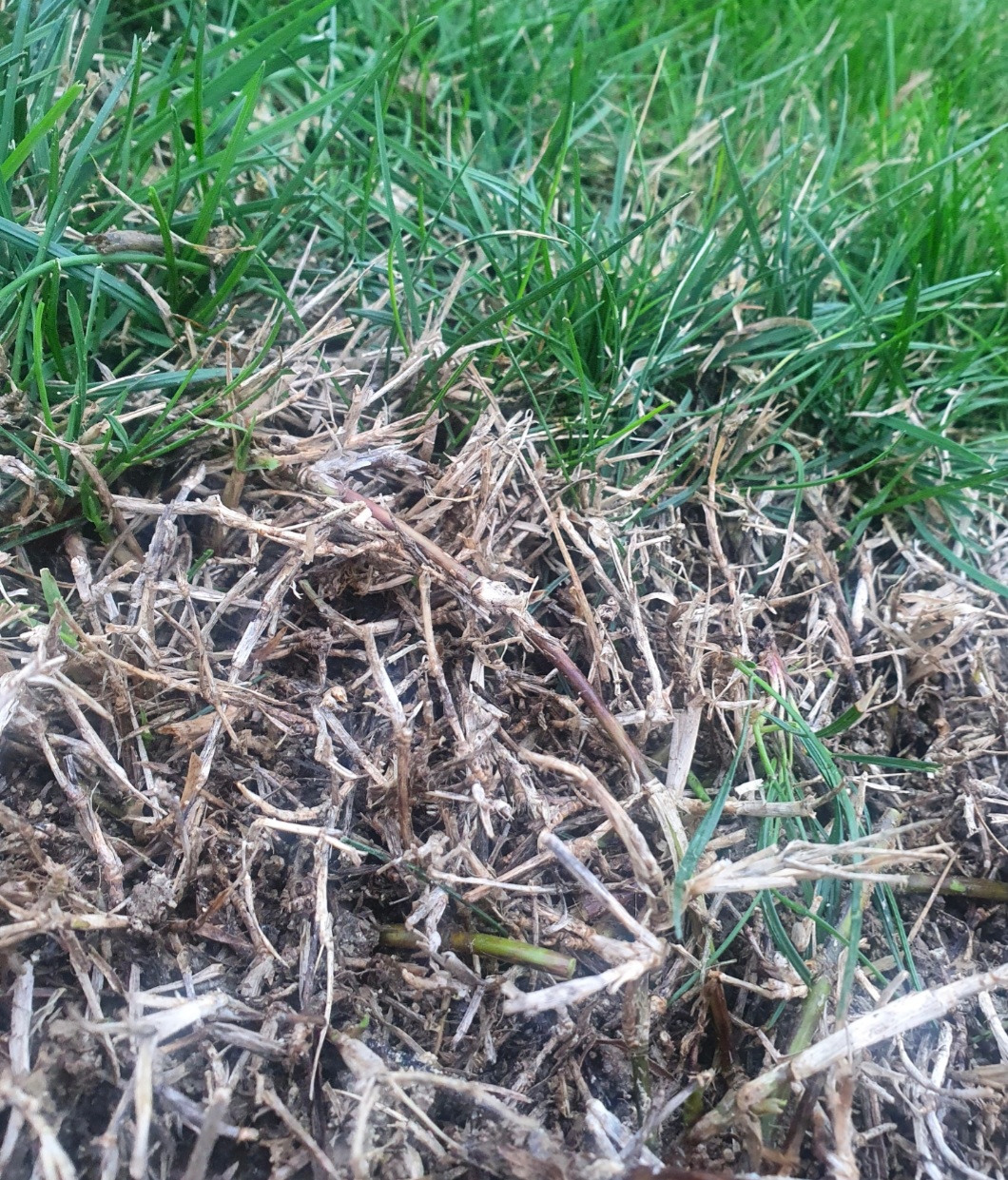 Je reviens avec une question un peu bête mais j'ai un gros doute. J'ai dans ma pelouse une grande zone circulaire où l'herbe est toute petite, sèche et banche/jaune. Je pensais au début qu'il s'agissait peut être d'une conséquence de l'hiver, d'un manque d'engrais ou autre,.... mais en l'observant de plus près ce soir, je me suis mis à douter. Ca ne ressemble au final pas vraiment à une simple herbe jaunit, donc j'ai peur qu'il s'agisse d'une autre plante ou champignon envahissant. Quand je tire dessus, il vient comme un long rhizome, ce qui me paraît très louche. Pouvez vous m'éclairer ?? J'attendais désespérément que cette zone réverdisse, mais si ca n'ai pas de l'herbe.... merci d'avance !!!