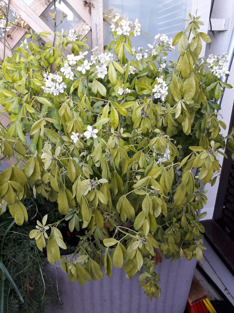J'ai remis une bonne partie de terre neuve et comme les feuilles sont très claires, un peu de solution anti chlorure.