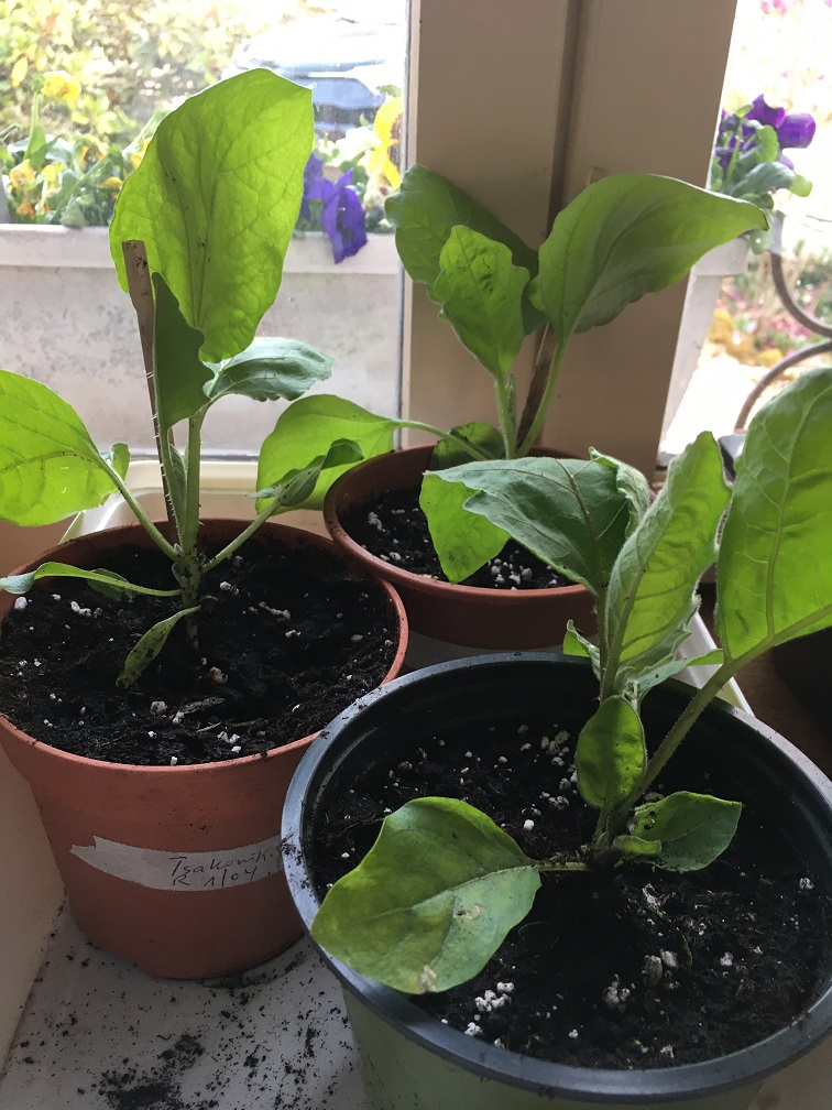 Et cet après-midi rempotage des premières aubergines qui commençaient à se sentir à l'étroit.