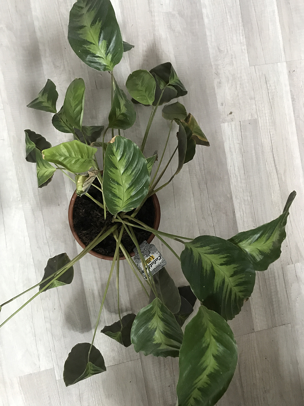 Dimanche dernier, après plusieurs tentatives pour m'en débarrasser, j’ai décidé de rempoter les plantes qui étaient dans mon salon et dans la cuisine, dont mon Calathea. Je voyais de minuscules insectes blancs se balader dans son terreau, je suppose qu’il s’agissait des pupes de mouches de terreau.