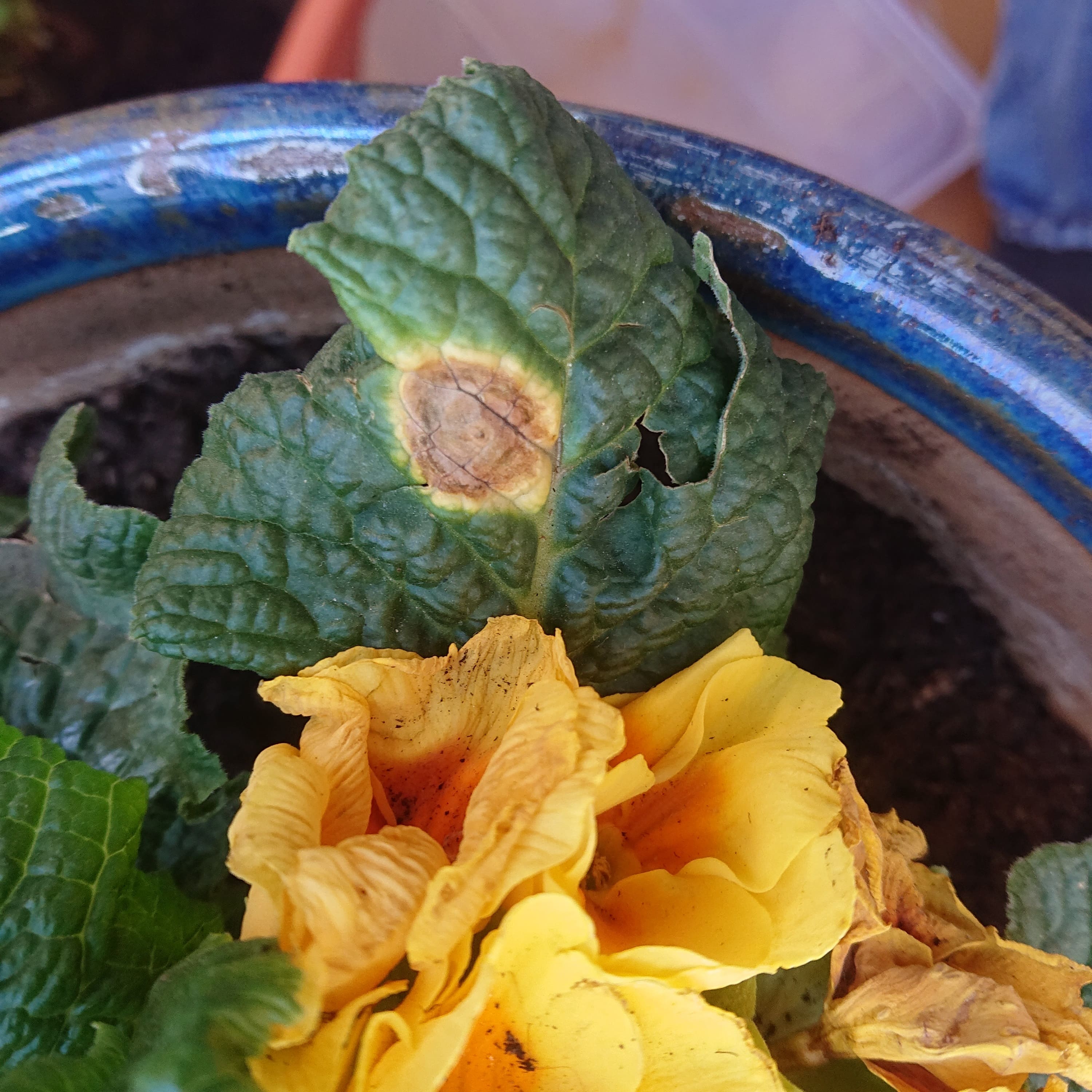 Re: Primevere feuilles qui s'enroulent et taches jaunes
