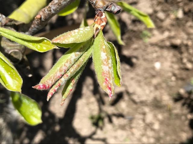 J'ai sur un petit arbre en espalier conférence une apparition inquiétante à la floraison. Les feuilles se vrillent et des taches rouges apparaissent . J'ai fait un traitement à la bouillie bordelaise .Est ce approprié ? . Diagnostic ? et proposition de traitement ? Christian
