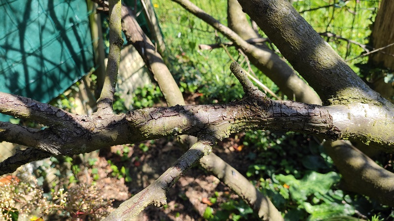 Les brindilles sont toujours noires sur cette variété