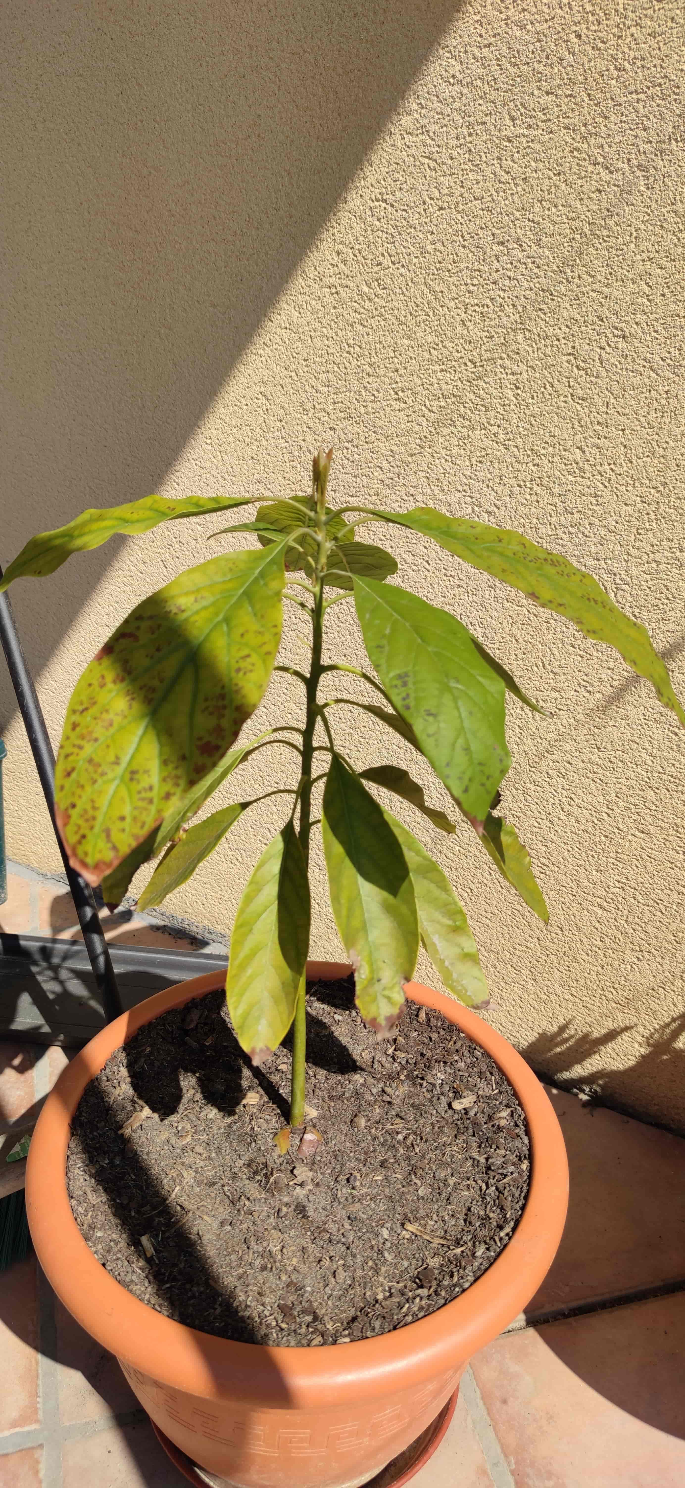 J'ai fait germer un avocatier voilà un an. Il a passé l'hiver au chaud, et aux beaux jours, je l'ai sorti à l'extérieur puis je l'ai remporté. Il fait environ 60cm de haut, il semble que ce soit normal et qu'il se porte bien.