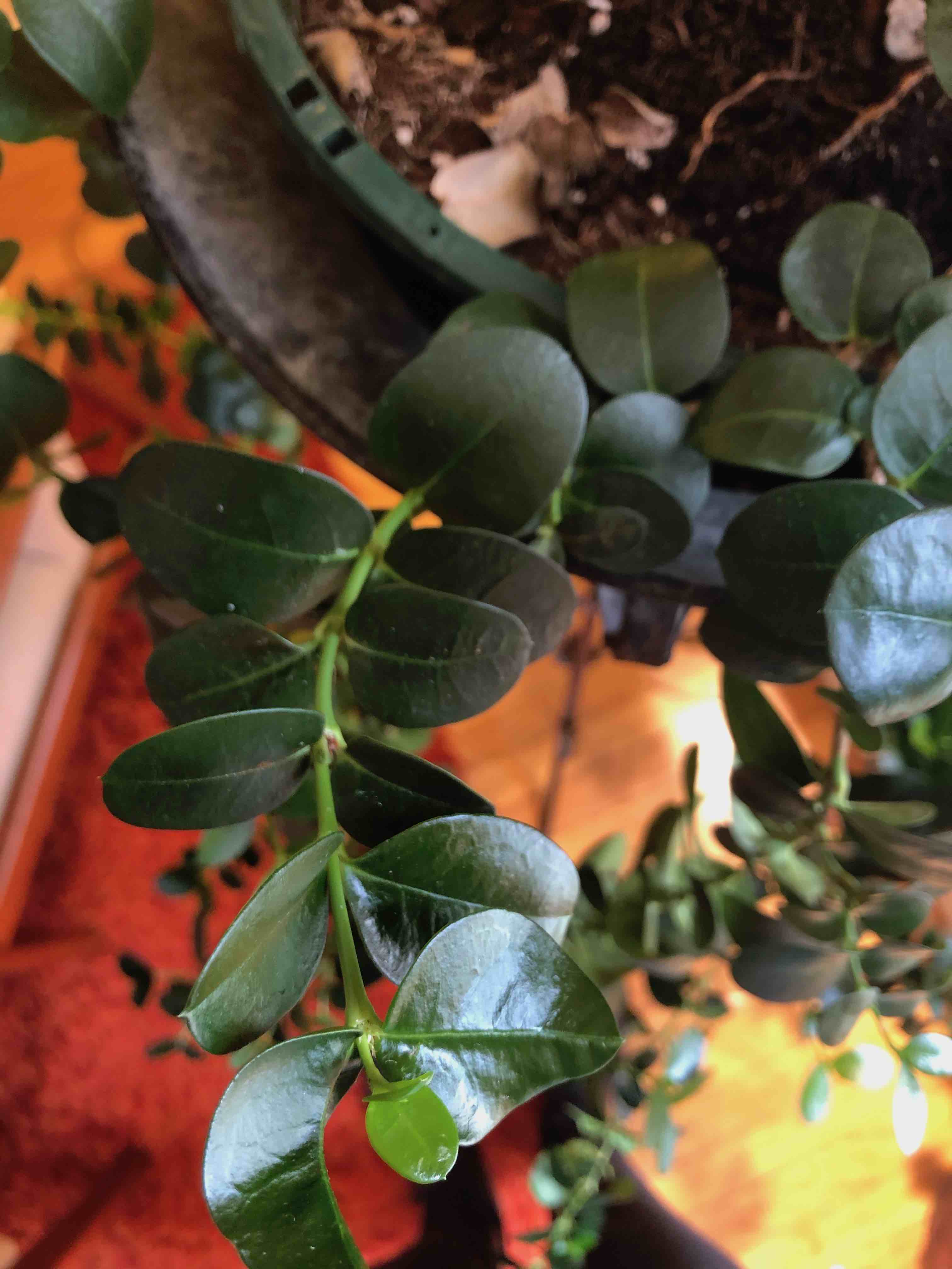 Le feuillage et le bouton floral blanc que je crois voir font penser à celui d'un Carissa, mais comme il ne semble pas y avoir d'épines, ce serait peut-être un Stephanotis....