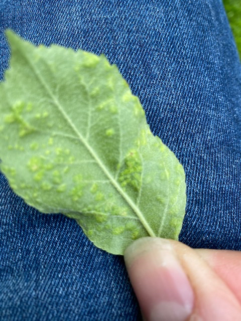 Plein de points vert comme des verrues sur les feuilles. Aucun insecte dessus/dessous. Je n’ai ce phénomène que sur l’un des pommier en espalier.