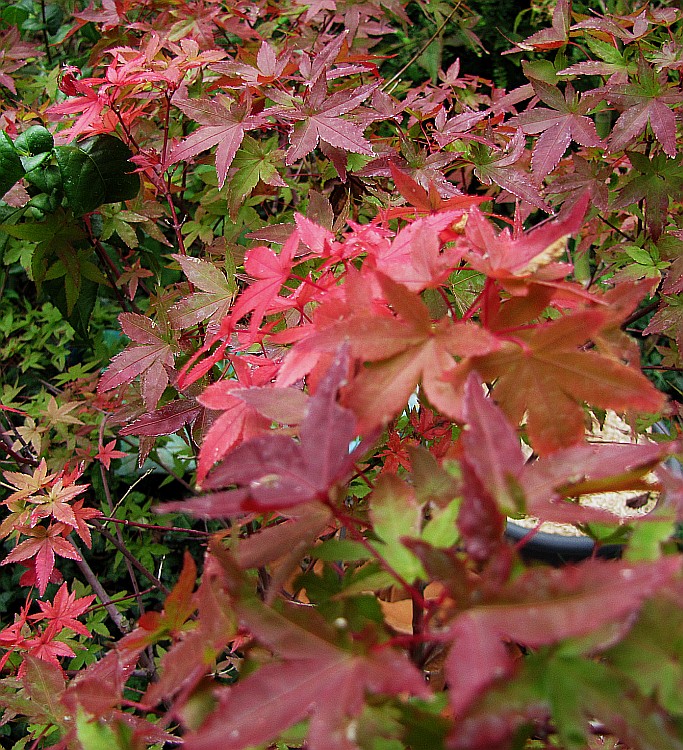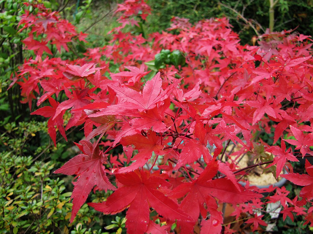 Outre sa coloration automnale qui est top, il est très vigoureux et assez facile de culture, au soleil et très dense. On peut donc aisément le tailler en vert pour lui donner une forme étagée. Je l'ai rempoté deux fois déjà et à chaque fois ses racines avaient colonisé le pot, le porte greffe est puissant.