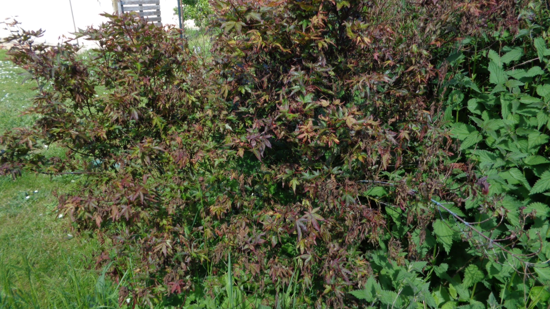 Fin avril 2021, nous avons eu le problème des geler ! Il y avait de la glace sur le mien ! (et aussi sur fireglow , béni maiko , bloodgood tous dans le jardin en pleine terre lourde) .