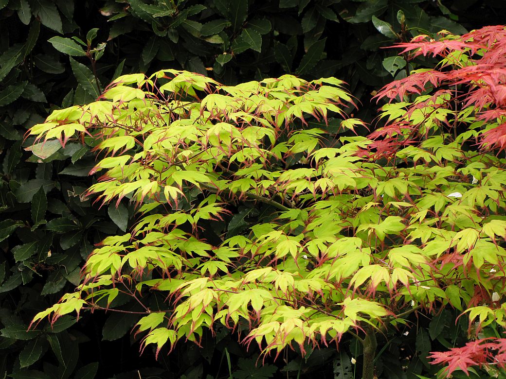 Un érable aux feuilles de 5 à 7 lobes, assez larges, vert tendre aux pointes rouges au printemps et finement dentées de façon régulière. Les feuilles ont tendance à pendre quand elles sont jeunes et le port,sans être pleureur est arrondi. Il atteindrait 3 m en hauteur et en largeur.