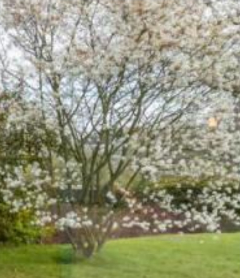 je me risque : un amélanchier ,si ce qui est blanchatre c'est des fleurs; un magnolia n'est pas exclus ,vu le port de la plante
