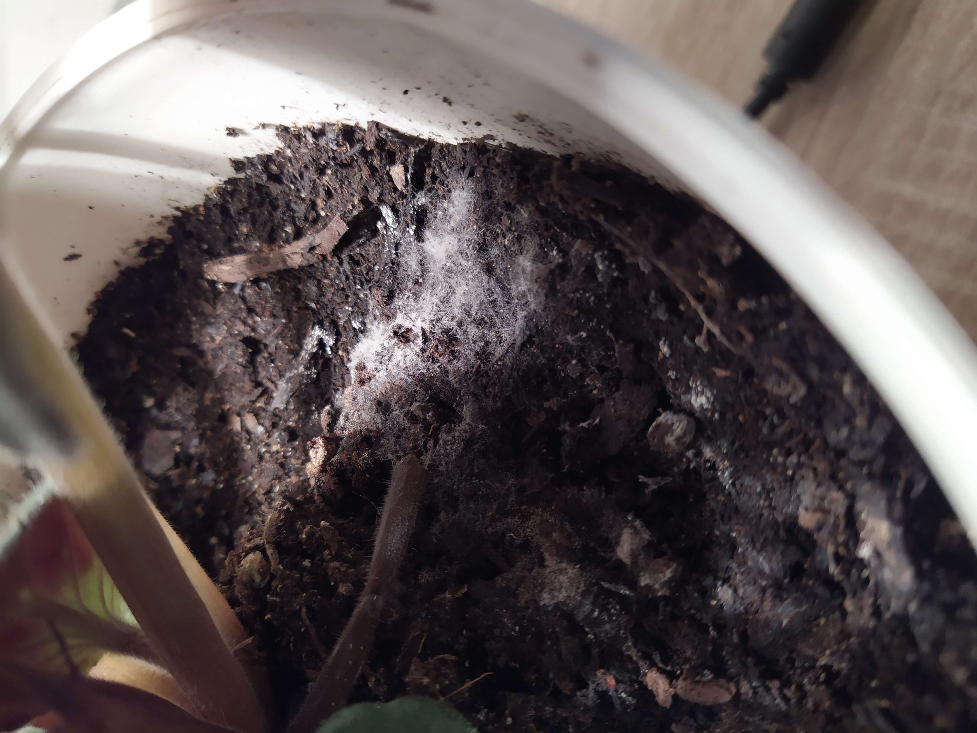il y a dela moisissure à la surface ; trop d'humidité de surface ; mais la plante semble saine