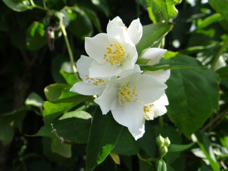 Les seringats débutent ici à fleurs simples et à fleurs doubles