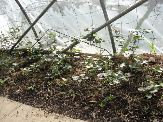 Pour les patates douces je les ai parqué sous les tunnels ouverts pour que les tomates à proximité ne soient pas envahies.