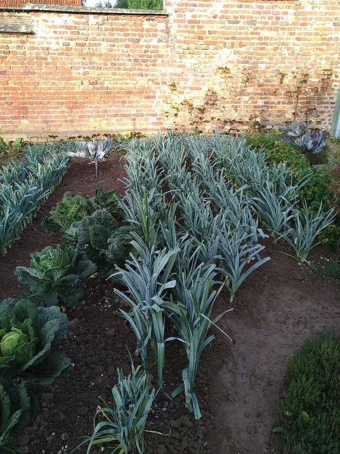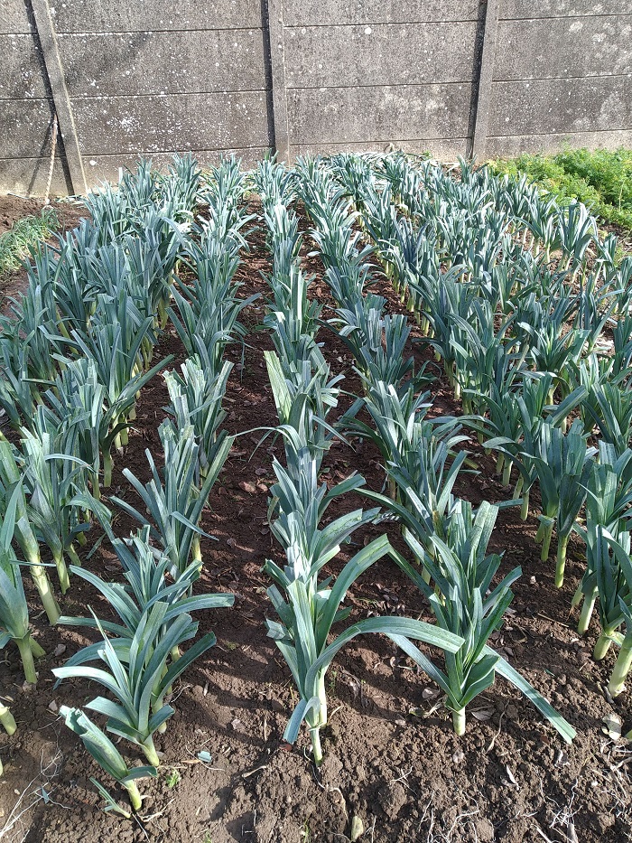 Petit potager après recoupe du feuillage poireaux et binage