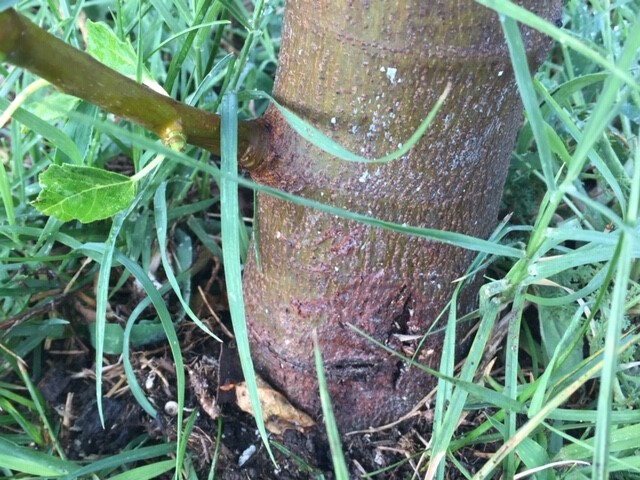 Je me suis aperçue que la base du tronc est abîmée, il y a comme une blessure autour de laquelle l'écorce est molle. Pourriture ? J'ai peur que ça s'aggrave, je ne sais quoi faire pour y remédier, mastiquer, ou encore chaulage ?