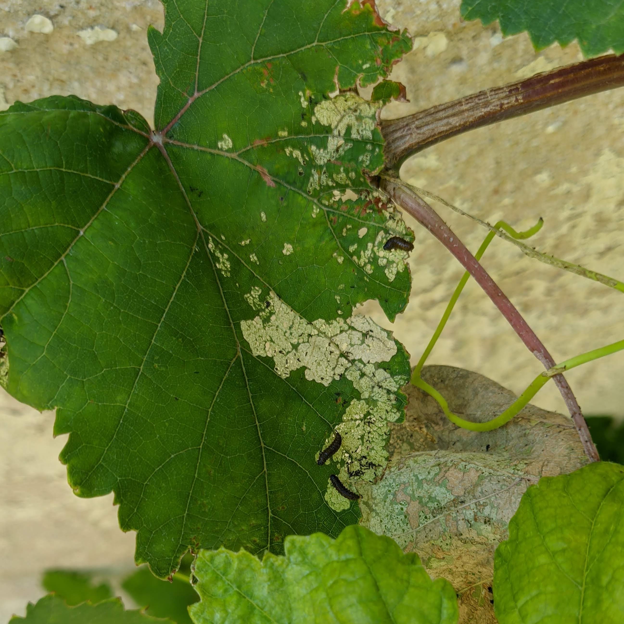 Depuis quelques jours, j'ai de petits parasites sur mes feuilles de vigne, ce qui les rend totalement sèches et grisâtres / brunâtres par la suite.