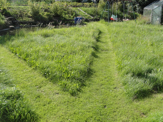 Et je ne tonds pas tout le gazon, mais seulement les passages qui donnent accès aux deux serres et aux différents étages du jardin et du verger.