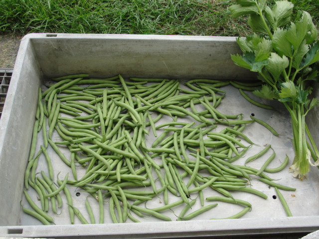 Quand on a les yeux plus grands que le ventre ... on prend un gros contenant pour ramasser les premiers haricots nains.