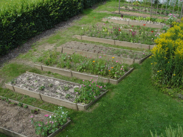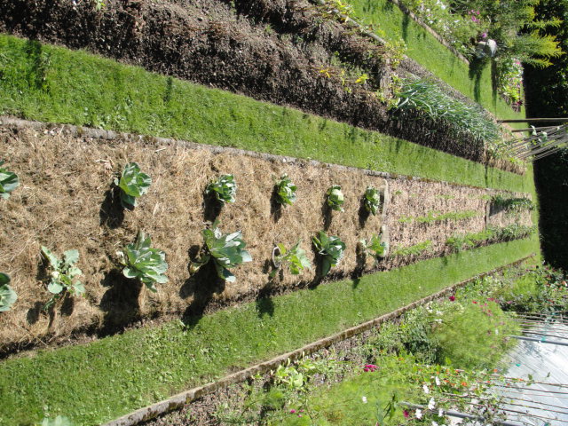 Des deux secteurs anciens (ouverts en 73) le secteur 1 est le plus pentu ce qui m'oblige à cultiver les rectangles en demi-buttes pour tenter de résoudre les mêmes problèmes d'épuisement du sol.