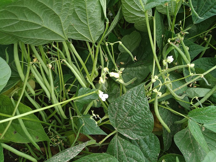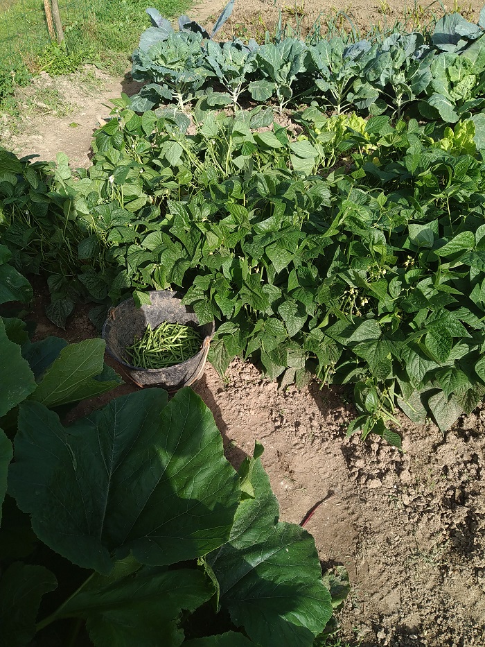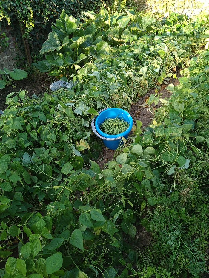 Cueillette de haricots au grand potager et couper les fanes de pommes de terre :roll:
