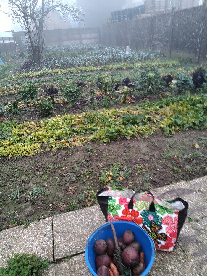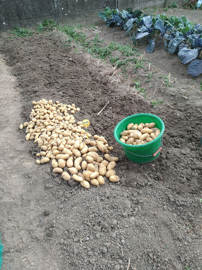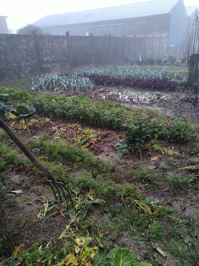Le grand potager après avoir coupé les fanes des pommes de terre Laurette et mise en caisse des échalotes :D