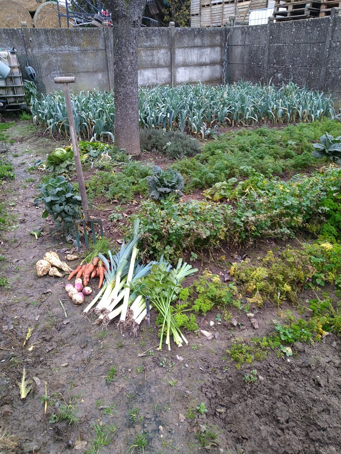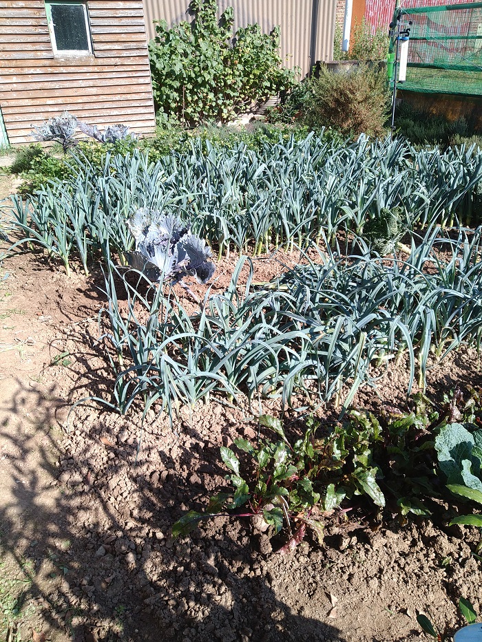 Petit potager après recoupe du feuillage poireaux et binage :sleep: