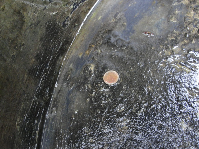 Aujourd'hui j'ai vidé entièrement le tonneau comme je le fais régulièrement une fois par mois pour frotter les parois et enlever les mousses (c'est une eau non potable !) et j'ai découvert ...