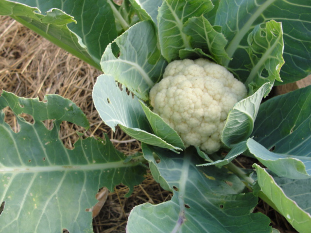 C'est le dernier chou-fleur récolté dans le tunnel - pas très grand, mais très bon !