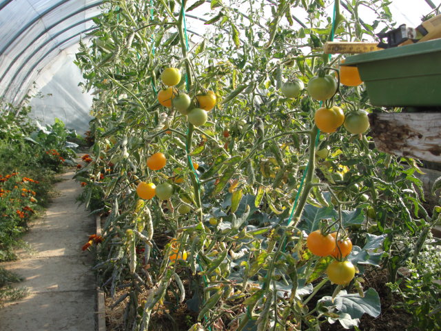 Le coin des tomates jaunes et oranges, des tomates plutôt petites mais exceptionnellement fruiteuses