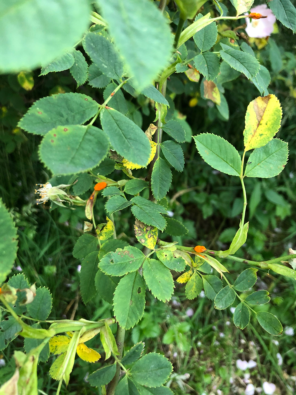 eglantier sauvage: tâches orange fluo -> future galle ?