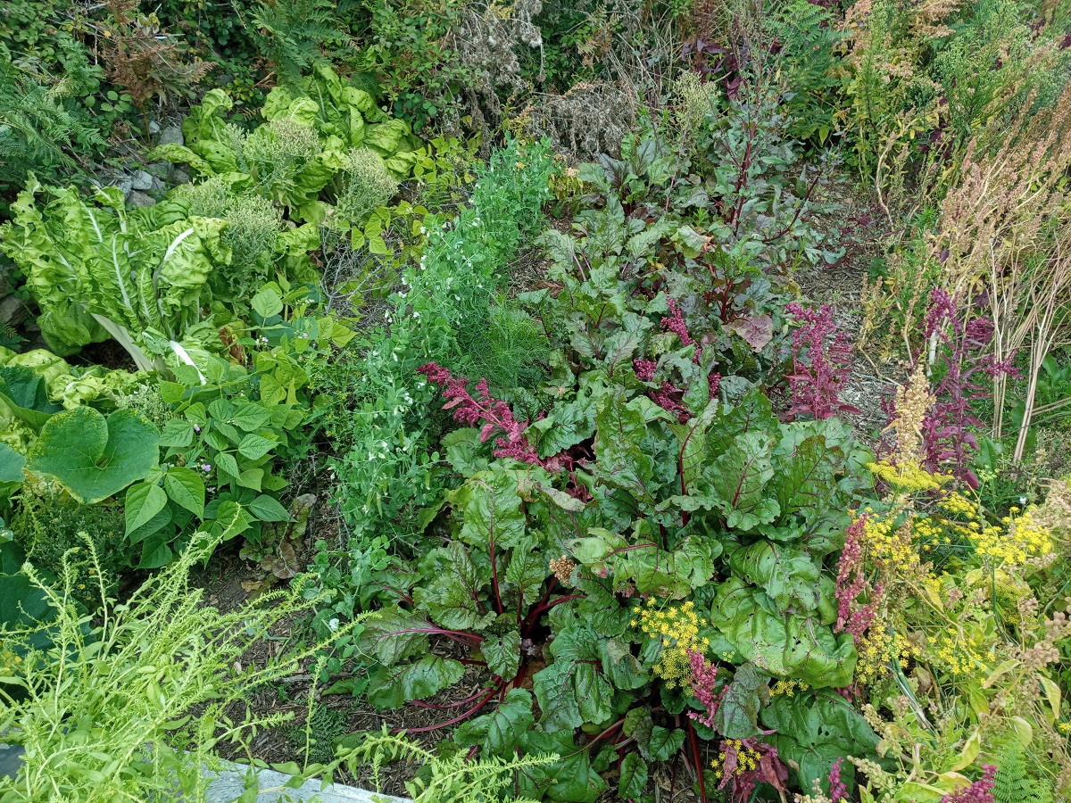 Et derrière la butte d'autres blettes, un semis tardif de haricots et petits pois, et les betteraves rouges :