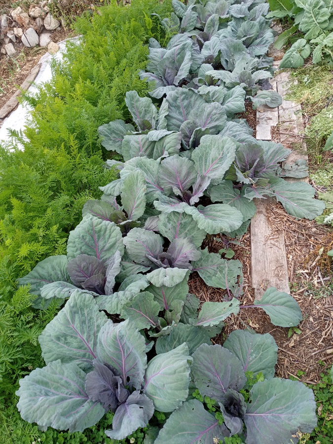 Au fond, les choux rouges sont superbes, les choux raves aussi sauf la moitié bouffée par les limaces !